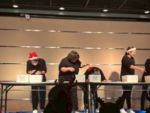 各事業所から辛さに自身のある職員を1人選出してサンタさんと競争しました✨