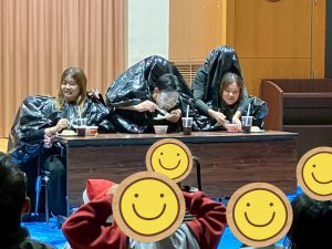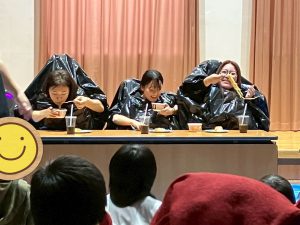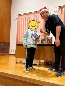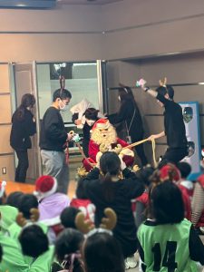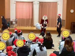 職員の出し物が終わりサンタさんが会場に駆けつけてくれました!