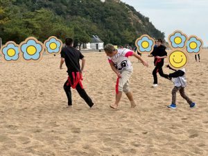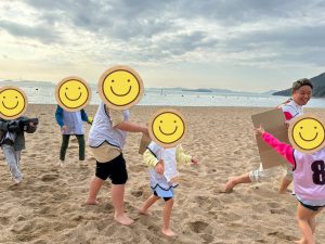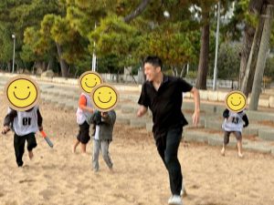 5色くらい入っている中から赤玉を1番に探したチームの勝利です