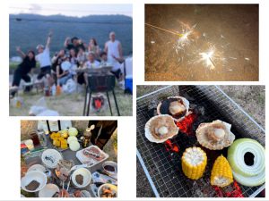 火起こし担当の男性陣🔥野菜や肉の準備をする女性陣🫑