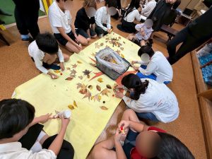 落ち葉やどんぐりなどを持ち帰って秋の壁面に!