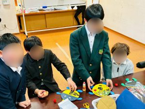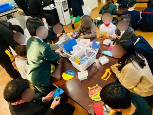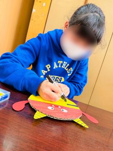 各々すきな色で塗ったり、色画用紙をはったりしていました!