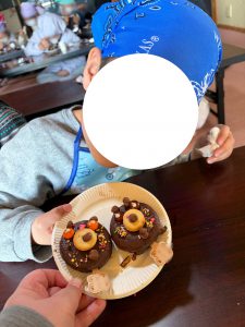 チョコペンで顔を書いたりしてクマさんを作りました✨