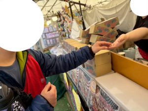 たくさん並んだ屋台の中から、みんなそれぞれ予算内で好きな食べ物を選んでお買い物🍡🍗
