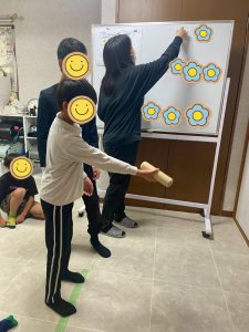 子どもたちにわかりやすいように職員がホワイトボードに得点を書いていきました✨